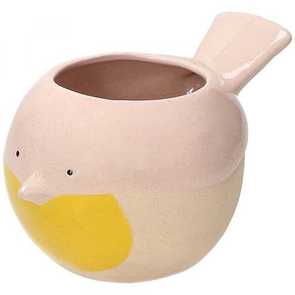 Керамична саксийка във форма птиче, в нежен бежов и розов цвят, за сухи или живи цветя или просто като декорация.