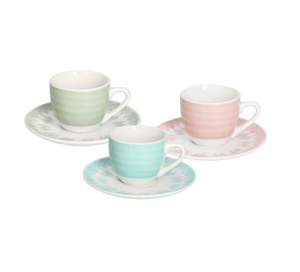 Комплект от чаши за кафе еспресо от линията Gipsy Soft напомнящи на италианския рустик стил - в свежи и живи цветове.
