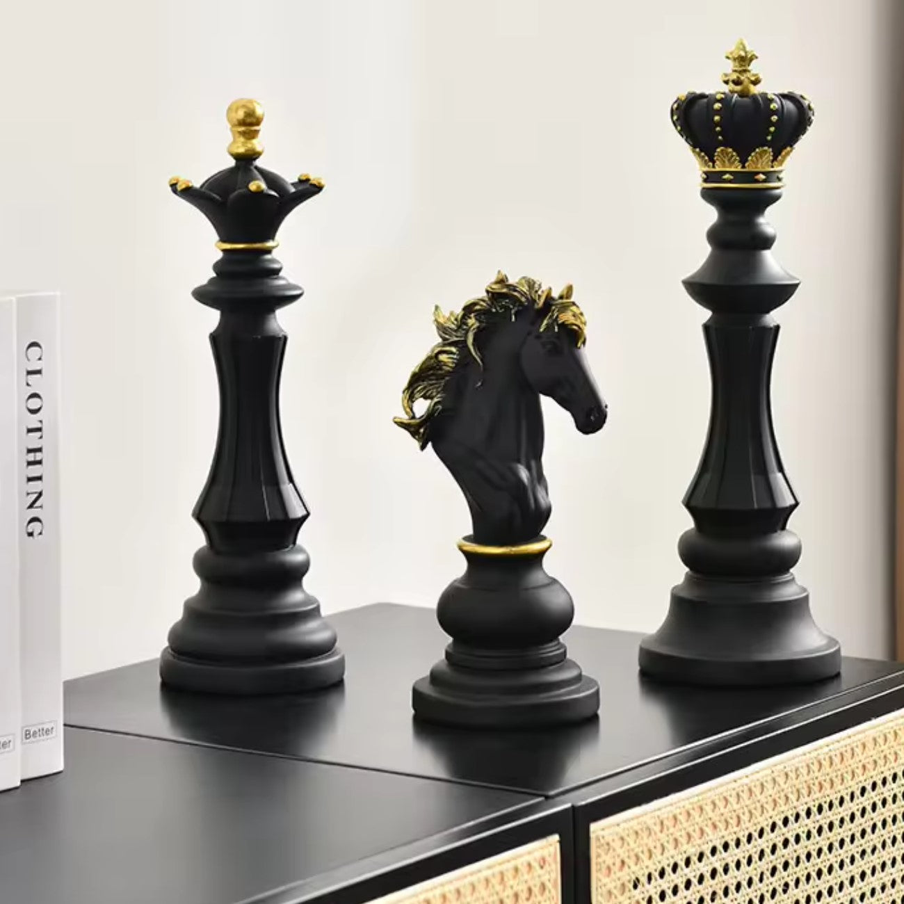 Елегантна декоративна шахматна фигура със златисти детайли.
