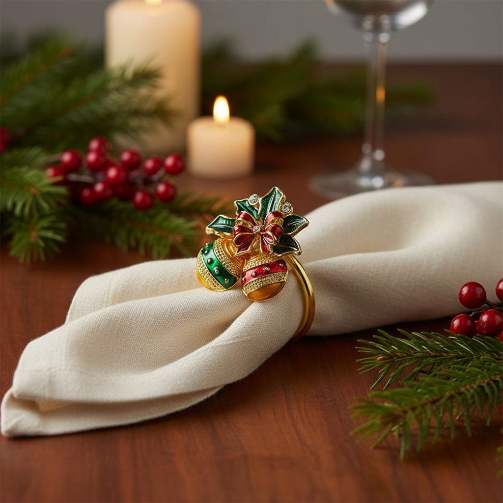 Елегантни пръстени за салфетки с коледни мотиви - коледни топки.