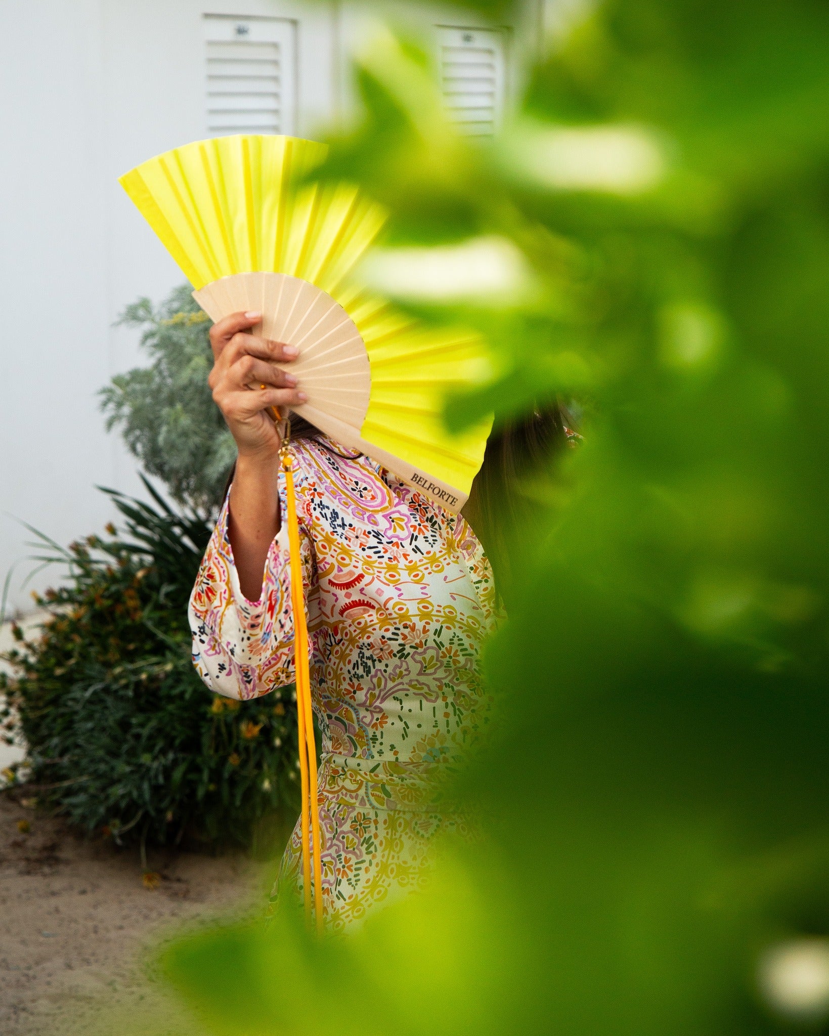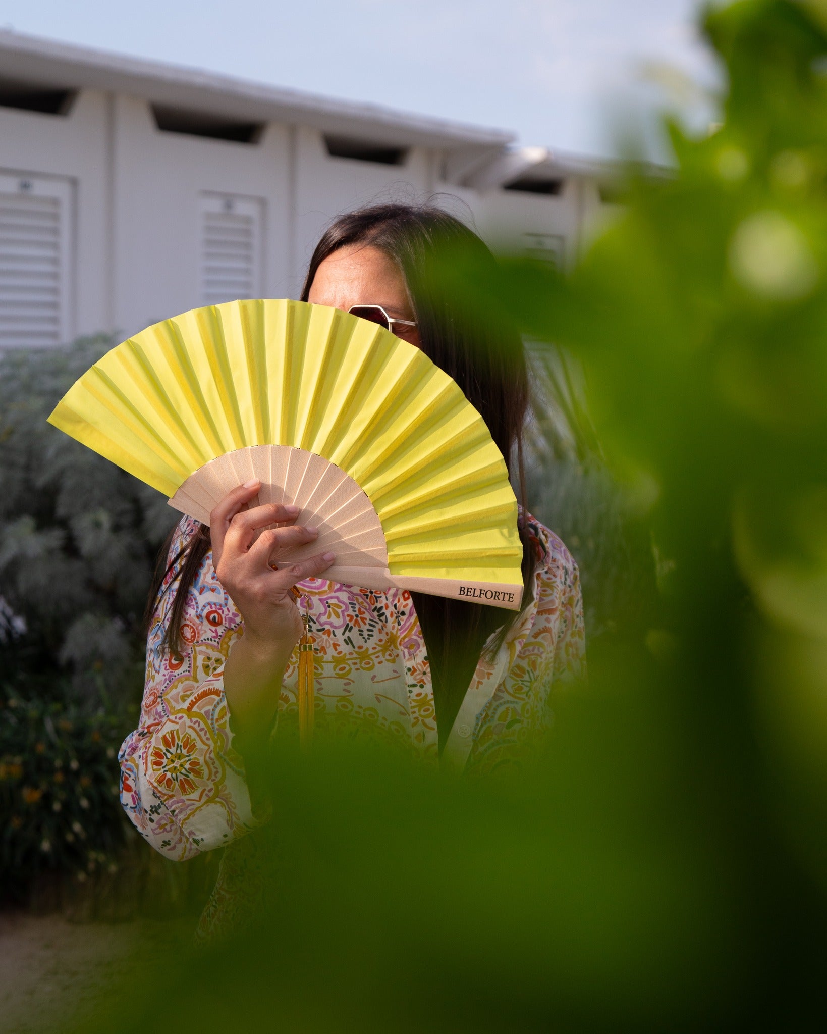 Впръскай деликатно от разстояние миниспрея върху ветрилото, за да го ароматизираш.